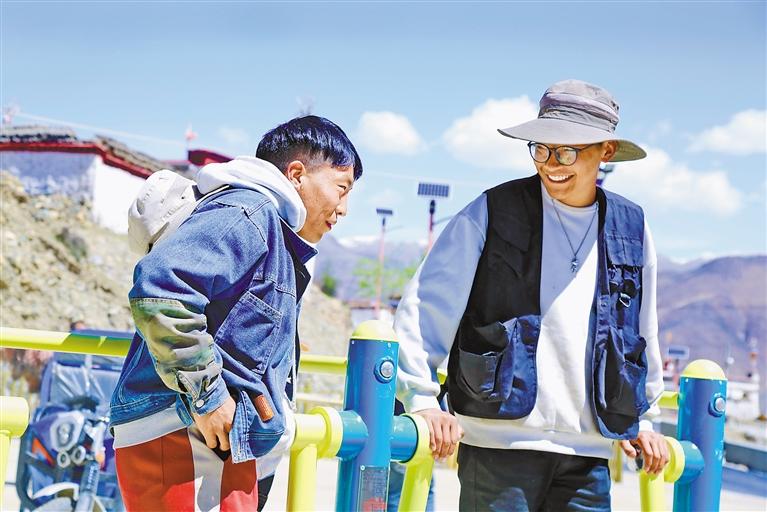 塔巴村村民在家門(mén)口的健身器材上鍛煉。