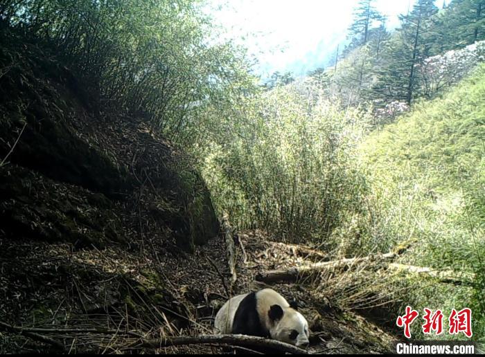 紅外相機拍攝到的野生大熊貓?!〈笮茇垏夜珗@平武老河溝片區(qū)供圖
