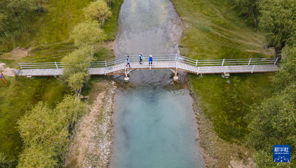 雅尼國家濕地公園管護(hù)員在巡護(hù)途中(無人機(jī)照片,9月8日攝)。新華社發(fā)(丁增尼達(dá) 攝)