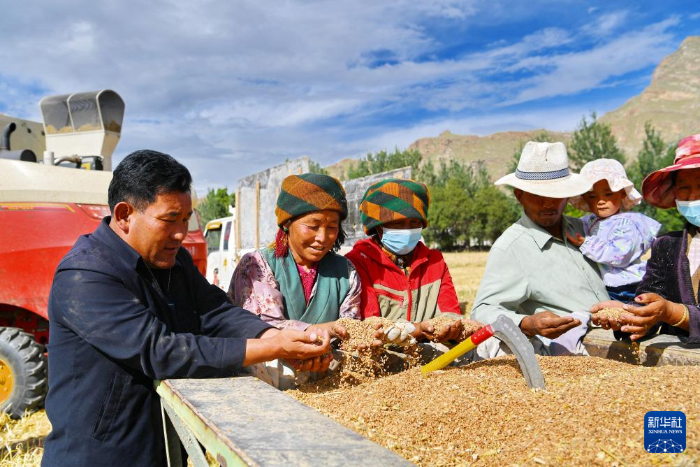 在西藏拉薩市曲水縣,人們收獲青稞(9月11日攝)。新華社記者 張汝鋒 攝
