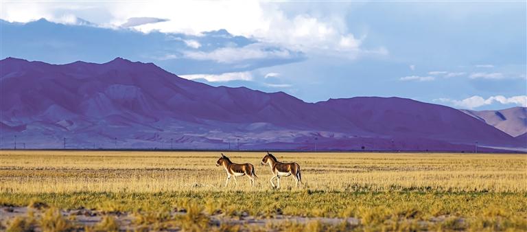 在羌塘國家級自然保護區(qū)內(nèi)行走的藏野驢。通訊員 邊巴多吉 攝