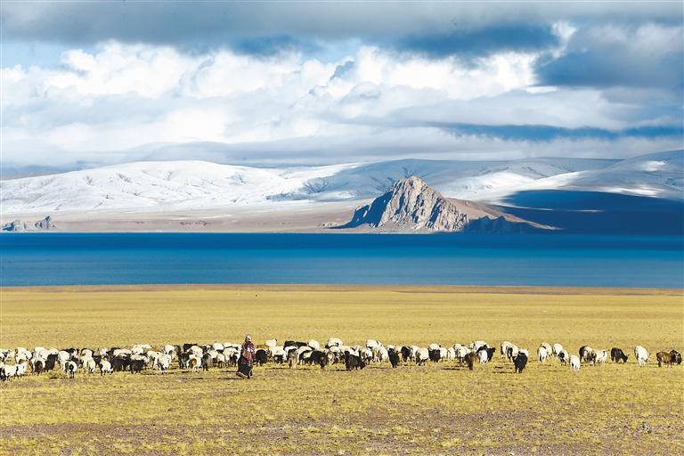 圖為改則縣洞措鄉(xiāng)牧民在放羊。記者 姚海全 攝