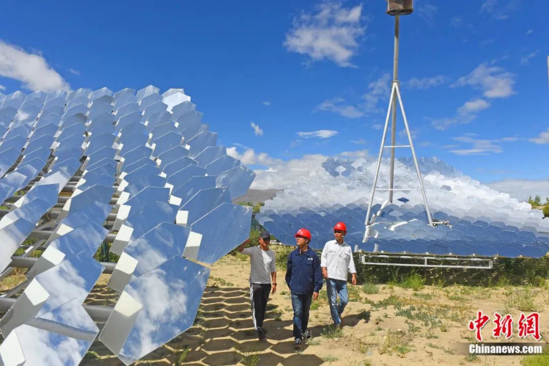 2020年6月,西藏山南市扎囊縣,工作人員對(duì)西藏首座多碟共焦塔式聚光集熱器的電力設(shè)施進(jìn)行驗(yàn)收。宋衛(wèi)星 攝