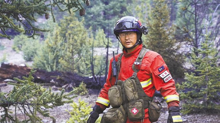 2020年的一天,林芝市突發(fā)一起森林火災(zāi)。3000多米的海拔,平均70度的坡度,還要背著幾十公斤的裝備,一個(gè)個(gè)不利因素都在考驗(yàn)著李渡和他的隊(duì)友們。面對(duì)困難和危險(xiǎn),身為分隊(duì)長(zhǎng)的李渡主動(dòng)請(qǐng)纓,要求第一批徒步接近火場(chǎng)打開突破口。李渡背上管帶、水泵,帶領(lǐng)著隊(duì)友們毅然走向火場(chǎng)。大火撲滅后,曾有人問他怕不怕?他說(shuō),怕是怕,但我們絕不能退,因?yàn)樯较掠刑嗥诖覀兒孟⒌娜嗣袢罕姟?/p>