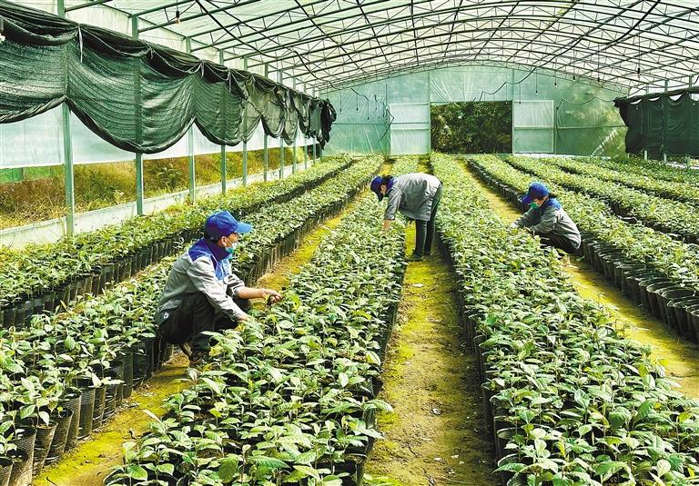 圖為墨脫縣格當鄉(xiāng)尼日卡林下資源合作社員工在修剪白肉枇杷苗。記者 王敏 通訊員 郎玲 攝