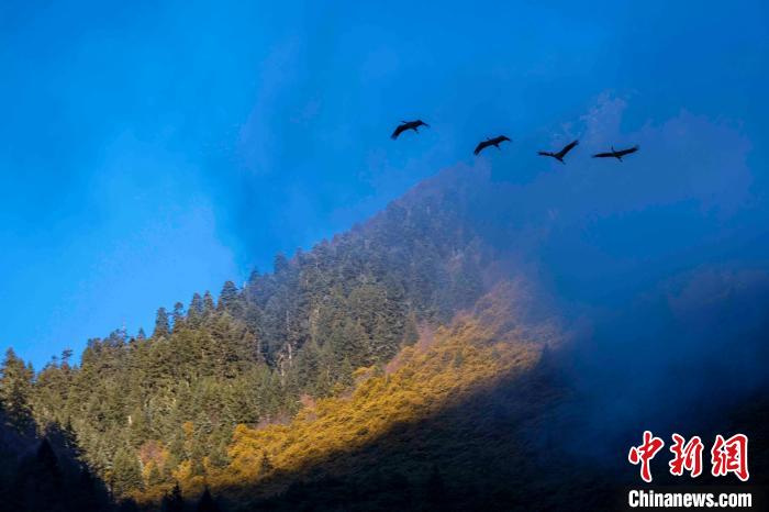 圖為西藏林芝市工布江達(dá)縣的黑頸鶴。益西旦增 攝