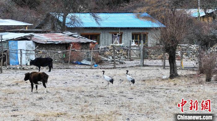 圖為西藏林芝市工布江達(dá)縣錯(cuò)高村里的黑頸鶴。張寧 攝