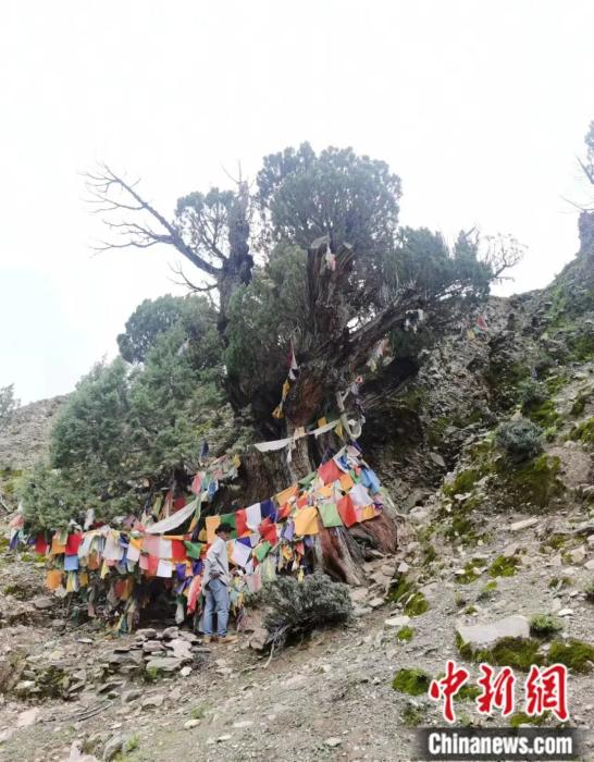 2023年8月,在西藏日喀則市昂仁縣一處海拔4260米的地方,張齊兵與團(tuán)隊(duì)發(fā)現(xiàn)一棵大果圓柏千年古樹(shù)。受訪者供圖