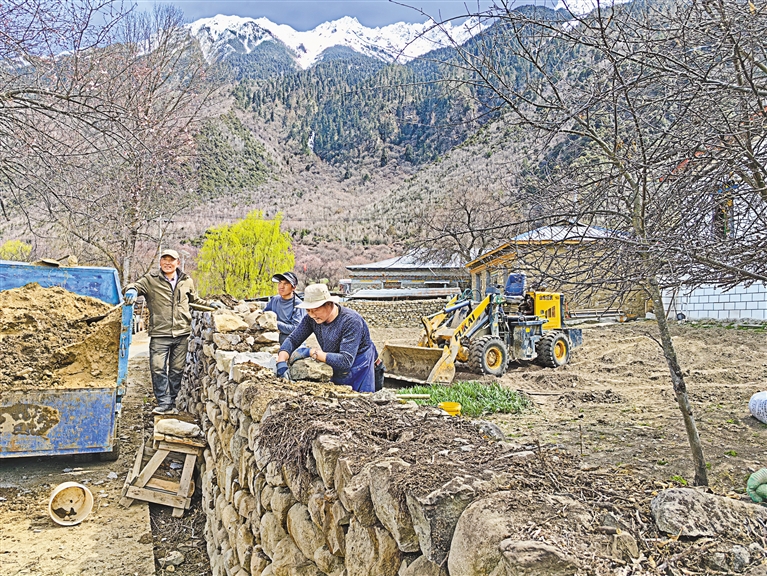 漫步村落,遠遠就聽見喧鬧聊天和砌墻的聲音,原來是強巴一家正在給果園砌圍墻?!霸豪锏奶O果樹發(fā)芽了,為了防止牛吃,我們就用石頭將圍墻壘得高一些,杜絕一切影響蘋果收成的因素?!睆姲退实匦Φ?,“去年我們家賣蘋果共收入4萬元,一年之計在于春,現(xiàn)在就要做足準備,今年收成肯定會更好!”閑談間,強巴從家里拿出一籃自家產(chǎn)的蘋果分給大家吃,深紅的蘋果在陽光下閃耀著誘人的光澤,散發(fā)著春天的甜美氣息。