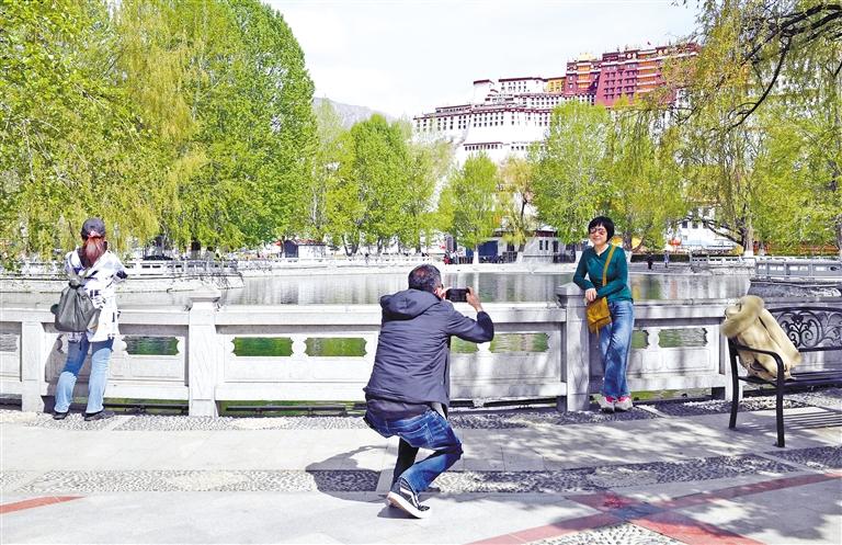 游客在布達(dá)拉宮廣場拍照留念。記者 旦增蘭澤 攝