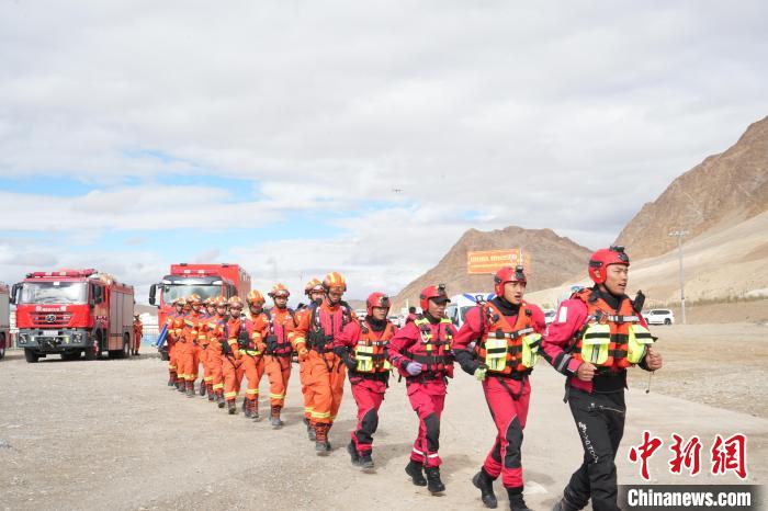 圖為西藏阿里消防支隊(duì)地質(zhì)災(zāi)害應(yīng)急救援演練現(xiàn)場(chǎng)。土旦穆朗 攝