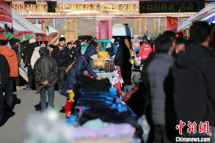 圖為市民在湘河谷冬季物資交流會活動現(xiàn)場選購商品。梁犇 攝