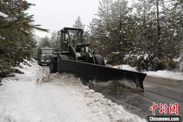 圖為武警官兵駕駛機(jī)械清除路面積雪。武警第二機(jī)動(dòng)總隊(duì)某支隊(duì)供圖
