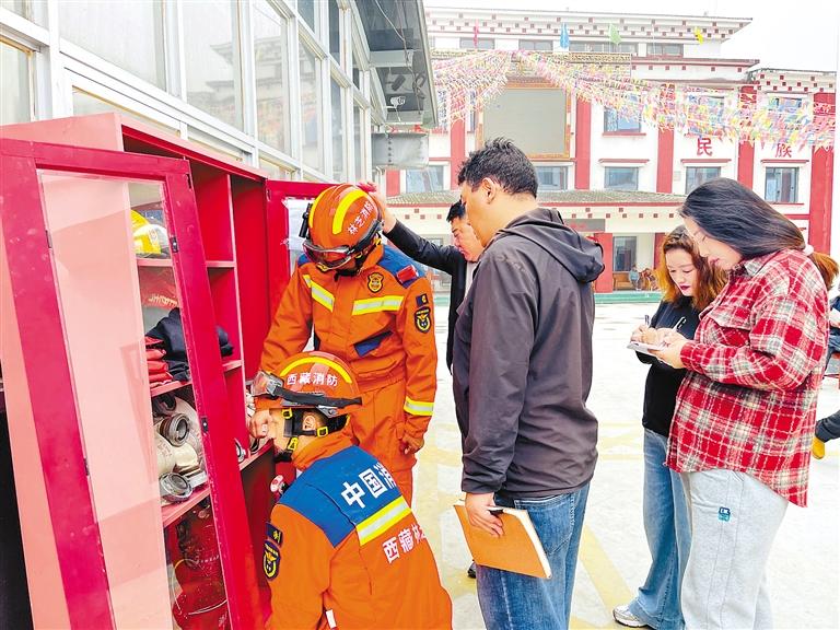 林芝市墨脫縣消防救援大隊宣傳人員檢查養(yǎng)老機構微型消防站的消防器材。通訊員 才旺多吉 攝