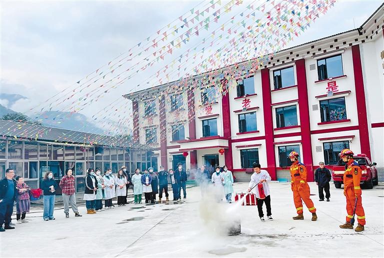 林芝市墨脫縣消防救援大隊宣傳人員走進養(yǎng)老機構,現(xiàn)場演示滅火器的使用方法,并進行實操演練。通訊員 才旺多吉 攝