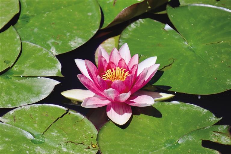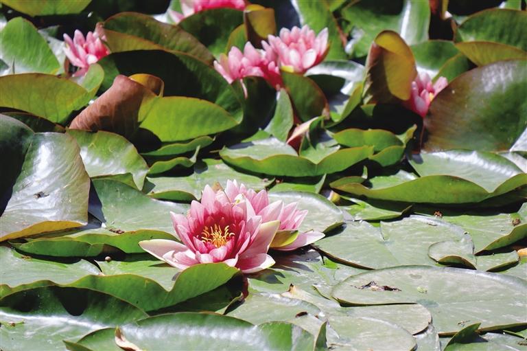 “移舟水濺差差綠,倚欄風搖柄柄香?!弊哌M柳梧國際總部城院內(nèi),在停車場的東側(cè),一池蓮花在層層蓮葉的襯托下開得正盛。走近池邊,蓮葉特殊的淡淡香味夾雜著潮濕的水汽撲面而來。粉、白的蓮花在幾場雨過后,迎著陽光依次綻放。幾個孩子在池邊嬉戲追逐,時不時用手挑起水花四濺,遠遠看去,頗有“小姑貪戲采蓮遲”的意味。