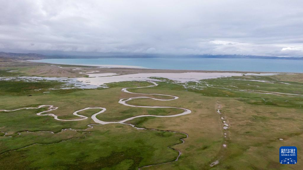 7月22日拍攝的瑪旁雍錯濕地一景(無人機照片)。新華社記者 旦增尼瑪曲珠 攝