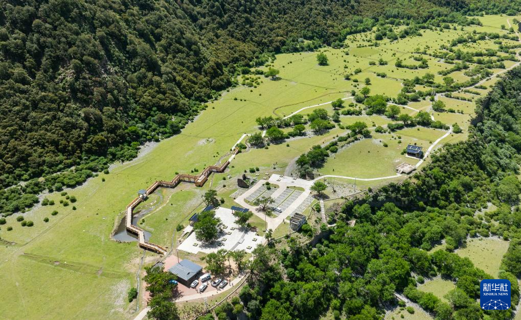 這是位于林芝市工布江達(dá)縣仲莎鄉(xiāng)林則村的林則生態(tài)文化旅游景區(qū)(7月23日攝,無人機(jī)照片)。新華社記者 丁增尼達(dá) 攝