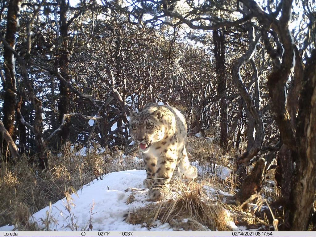 這是2021年2月14日紅外相機拍攝到的雪豹。 新華社發(fā)(大熊貓國家公園臥龍片區(qū)供圖)