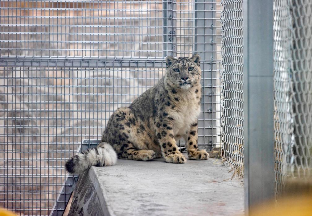 10月24日,在位于寧夏賀蘭山國(guó)家級(jí)自然保護(hù)區(qū)內(nèi)的寧夏賀蘭山雪豹保護(hù)研究基地,一只雪豹準(zhǔn)備進(jìn)行適應(yīng)性訓(xùn)練。新華社記者 楊植森 攝