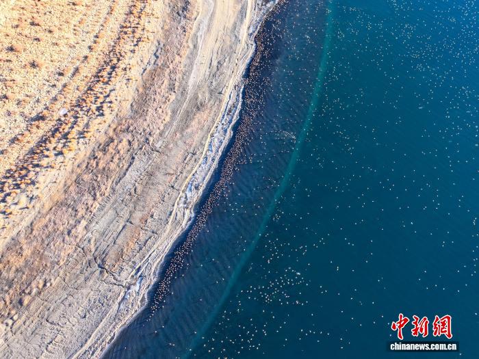 1月18日,成群候鳥在沉錯(cuò)水域越冬。(無(wú)人機(jī)照片)中新社記者 貢嘎來(lái)松 攝