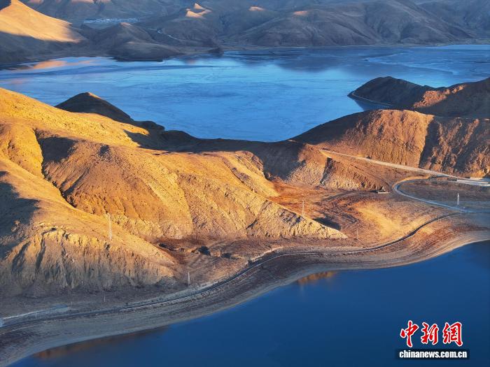 1月18日,西藏羊卓雍錯(cuò)流域沉錯(cuò)風(fēng)光。(無(wú)人機(jī)照片)中新社記者 貢嘎來(lái)松 攝
