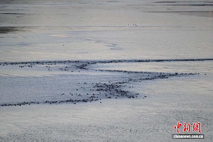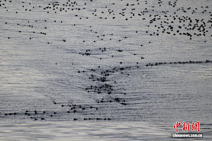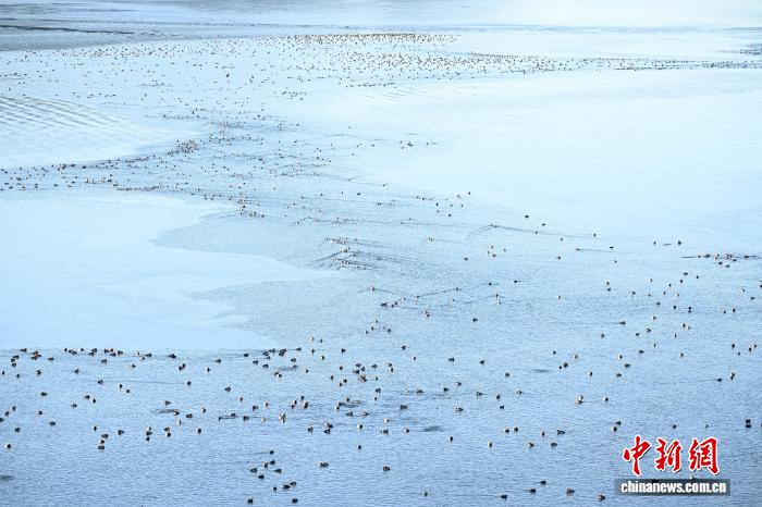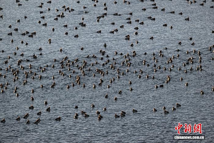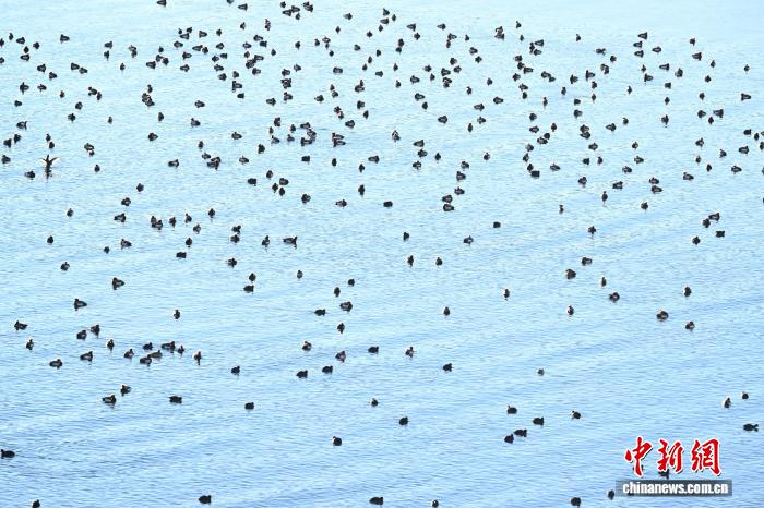 1月18日,成群的赤嘴潛鴨在沉錯(cuò)水域越冬。中新社記者 貢嘎來(lái)松 攝