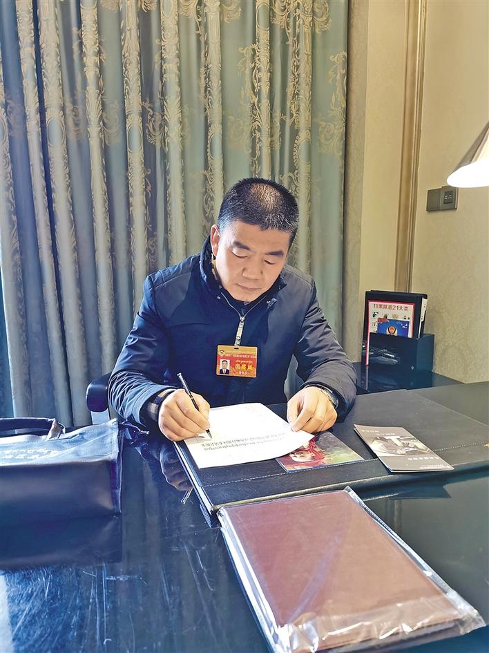 圖為自治區(qū)政協(xié)委員董昆紅在整理提案資料。 記者 索朗瓊珠 攝