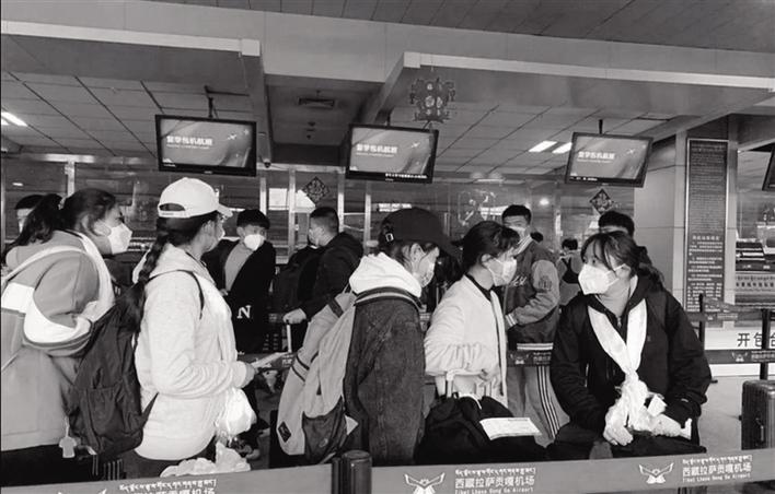 返程學生在貢嘎機場辦理登機手續(xù)。圖由民航西藏區(qū)局提供