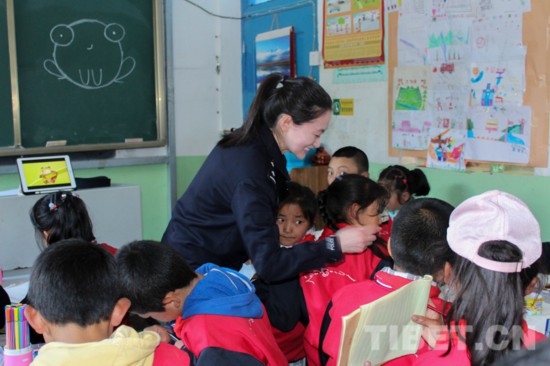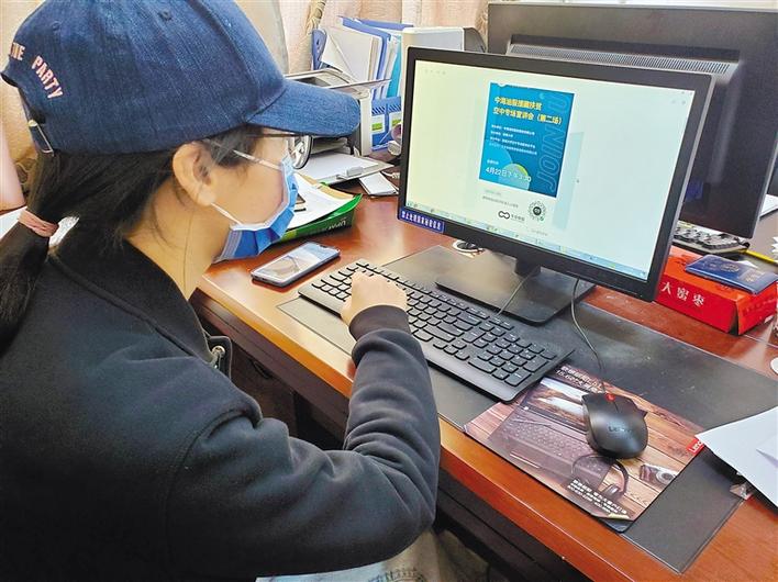 圖為西藏大學2016級思想政治教育班的學生李廣菊通過網(wǎng)絡(luò)觀看中海油公司組織召開的援藏扶貧空中專場宣講會。記者 潘璐 攝
