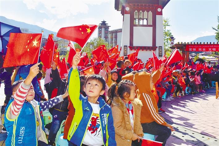 墨脫縣舉辦的文體活動中,小朋友手持小國旗,表達(dá)愛國情。記者 孫文娟 通訊員 李龍勇 攝