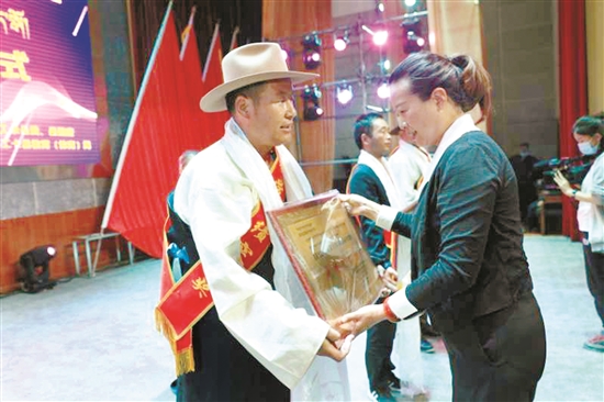圖為墨竹工卡縣相關(guān)負責人為受表彰者頒獎。 拉薩融媒通訊員 洛 克攝