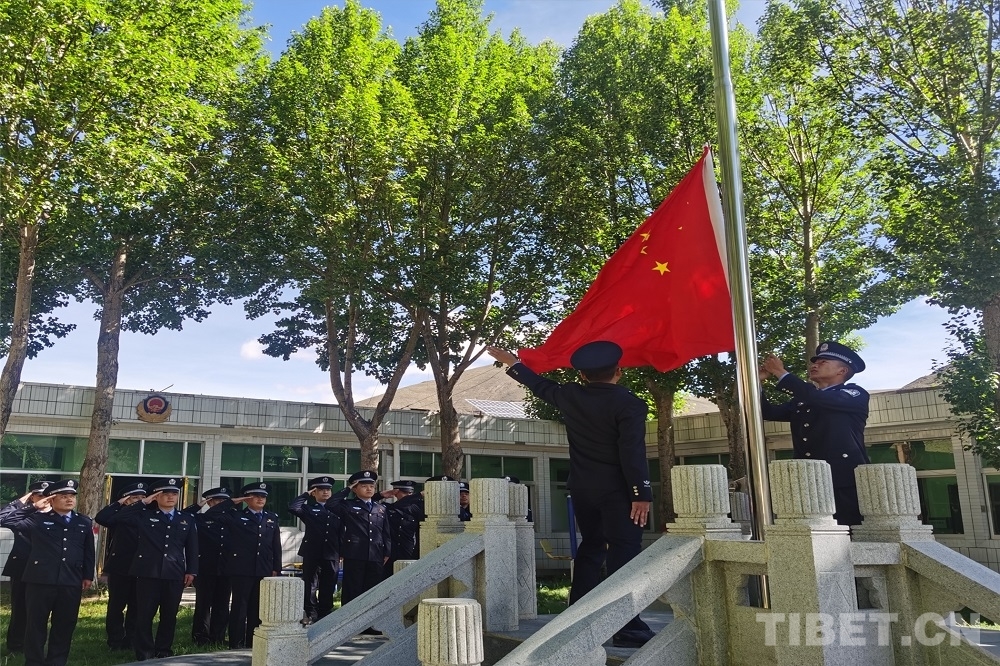 圖為雪布下邊境檢查站組織民警開展升國旗儀式 攝影:次朗