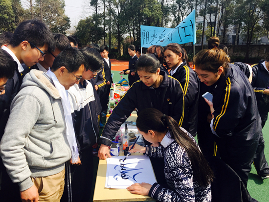 上海市浦東外事服務(wù)學(xué)校師生在校內(nèi)參加愛心義賣活動(dòng)。受訪者供圖