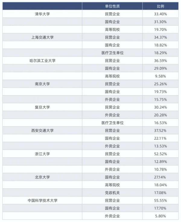 而除去北京大學(xué)和復(fù)旦大學(xué),在其他7所高校中,國有企業(yè)均占比第二。