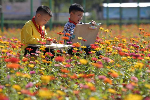 今年暑假剛剛到任江西省宜春市袁州區(qū)寨下鎮(zhèn)中心小學的殷大福校長看著教學樓前一大片長滿雜草的荒地,希望能在上面做點文章,讓孩子們課后有個休閑活動的好去處。于是,他和老師們一起平整荒地,種下百日草的種子,開辟出花田和草坪。如今,昔日的荒地上已綻放出一片絢爛的花海,學生們的學習生活因此更加豐富多彩。美術課、十字繡興趣小組的同學紛紛到花田邊寫生、采風,孩子們在綠地里玩耍訓練。每周,殷大福校長還會組織不同班級的學生下田勞動,為鮮花松土、施肥、澆水,讓他們親身體驗守護生活中美好的滋味。呵護、陪伴、欣賞……一顆顆真善美的種子在學生們的心底悄然種下。