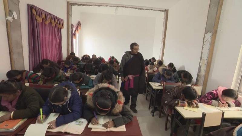 年末的安多早已步入寒冬,忙碌的時節(jié)已接近尾聲。隨著牧閑時節(jié)的到來,帕那鎮(zhèn)一村的“夜?!睙狒[非凡,不時傳來一陣陣讀書聲。每年這個時候,帕那鎮(zhèn)一村宣傳委員嘎達會按時組織牧民們一起補習他們曾經(jīng)落下的藏文、語文、數(shù)學基礎和政策知識、科學文化、法律法規(guī)等知識內(nèi)容。