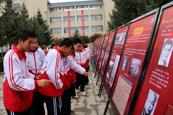 圖為甘肅省平涼市靜寧縣第一中學學生在觀摩“紅軍故事”展板。尹曉軍 楊葉 攝影