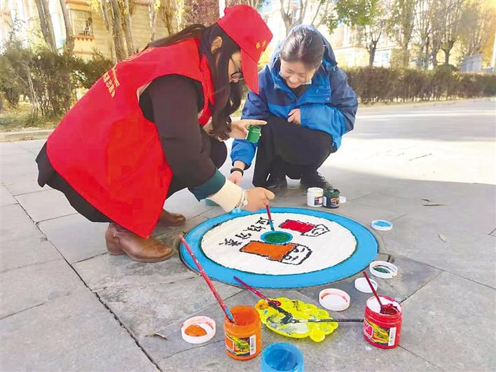 拉薩城關區(qū)又多了一道美麗的風景,納金村路面上出現(xiàn)了一幅幅創(chuàng)意十足的涂鴉作品。