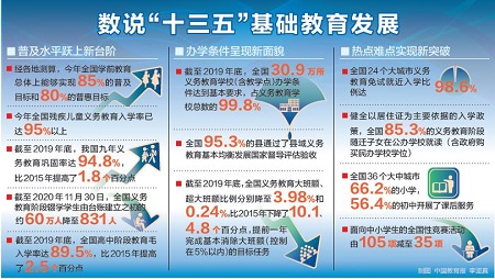 截至2019年底,全國30.9萬所義務(wù)教育學(xué)校(含教學(xué)點(diǎn))辦學(xué)條件達(dá)到基本要求,占義務(wù)教育學(xué)??倲?shù)的99.8%;全國95.3%的縣通過縣域義務(wù)教育基本均衡發(fā)展國家督導(dǎo)評(píng)估驗(yàn)收。[詳細(xì)] -