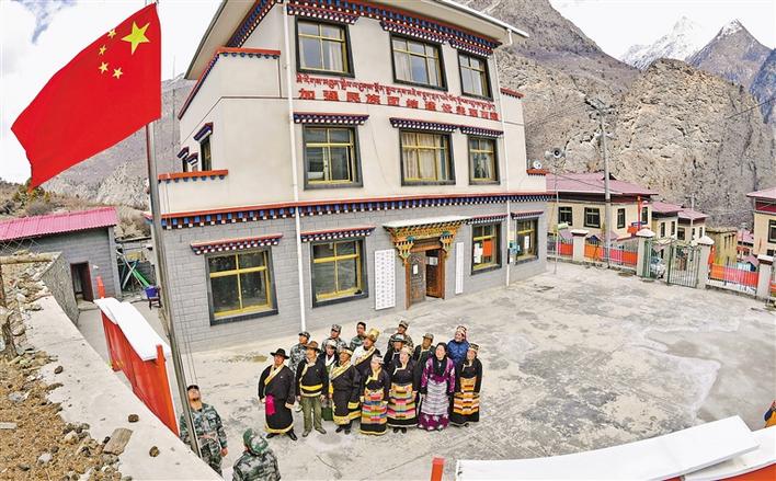 3月20日,西藏林芝市西日卡村村民代表在村委會(huì)小廣場(chǎng)舉行升國(guó)旗、唱國(guó)歌儀式。61年前,五星紅旗在西日卡村冉冉升起,開啟了一個(gè)村莊和一面國(guó)旗不可割舍的情懷。從此,升國(guó)旗成為這個(gè)雪域山村不變的傳統(tǒng)。鮮艷的國(guó)旗,印記著西日卡村農(nóng)奴翻身解放的歲月,見證著邊陲村莊日新月異的變遷。新華社記者 張汝鋒 攝