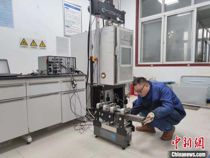 黃恒偉與團(tuán)隊為莫喀高鐵項目進(jìn)行凍融劈裂試驗?!∈茉L者供圖