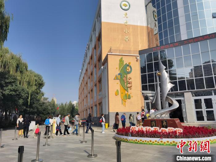 圖為虎臺小學新生家長有序進入教學樓?!±铍h 攝