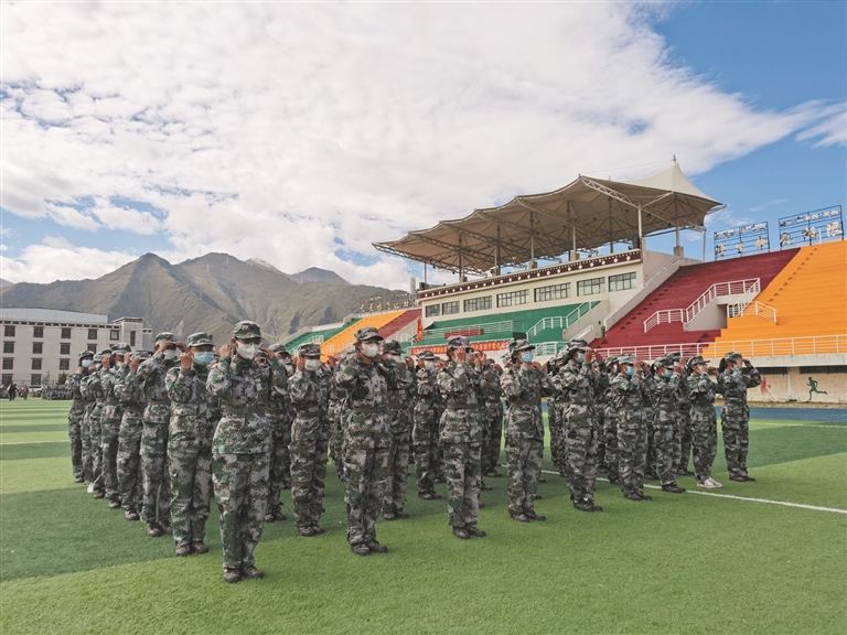 拉薩市第二中等職業(yè)技術(shù)學(xué)校舉行2021級新生愛國主義軍訓(xùn)開營儀式