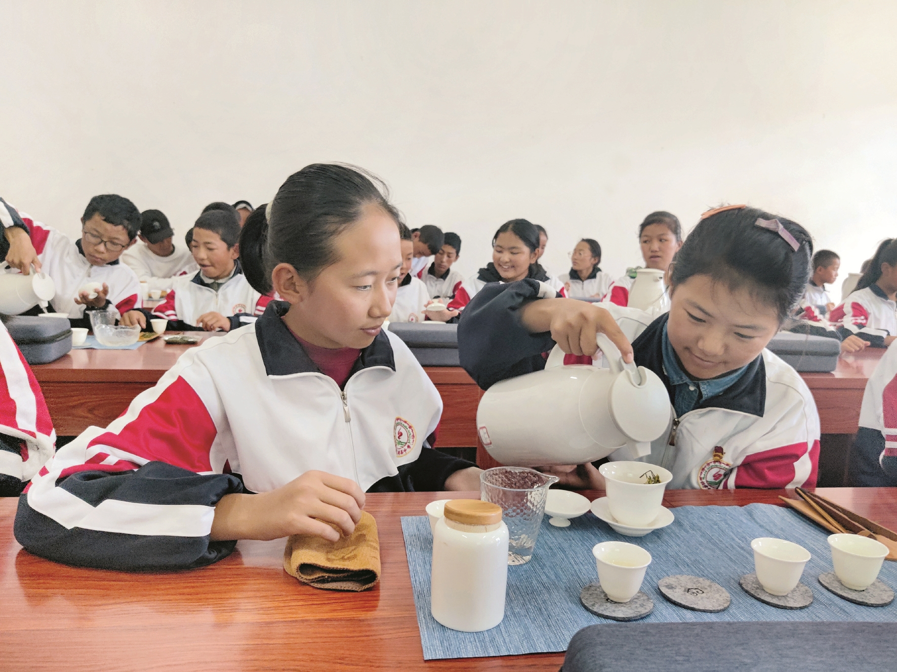 為了培養(yǎng)同學(xué)們的動(dòng)手能力,激發(fā)對中華茶文化的學(xué)習(xí)興趣,提高綜合文化素養(yǎng),拉薩市教育局青少年實(shí)踐基地定期組織學(xué)生開展茶文化學(xué)習(xí)實(shí)踐活動(dòng),在茶香氤氳中,學(xué)生們溫杯潔具、觀茶敬茶,感受茶的雅致魅力,體會(huì)茶文化的深厚內(nèi)涵。