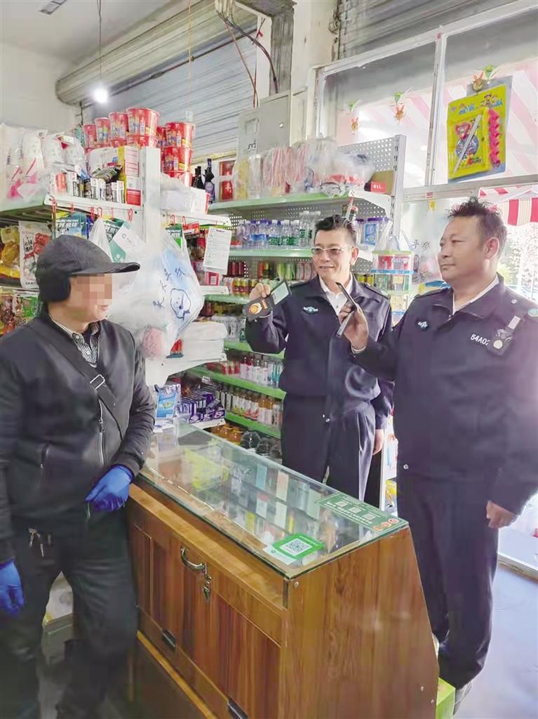 拉薩市煙草專賣局執(zhí)法人員向當(dāng)事人出示執(zhí)法證件。 圖由拉薩市煙草專賣局提供