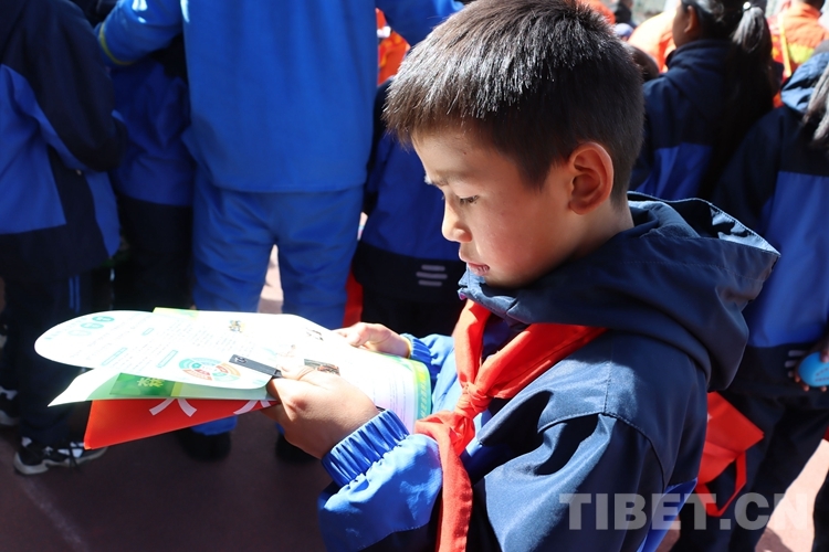 該小學(xué)相關(guān)負(fù)責(zé)人表示,通過森林火災(zāi)安全宣傳教育活動,進一步提升了全校師生的森林防火意識,提高了大家保護生態(tài)的安全意識。圖為小學(xué)生閱讀消防員發(fā)放的宣傳冊 (中國西藏網(wǎng) 通訊員/張林)