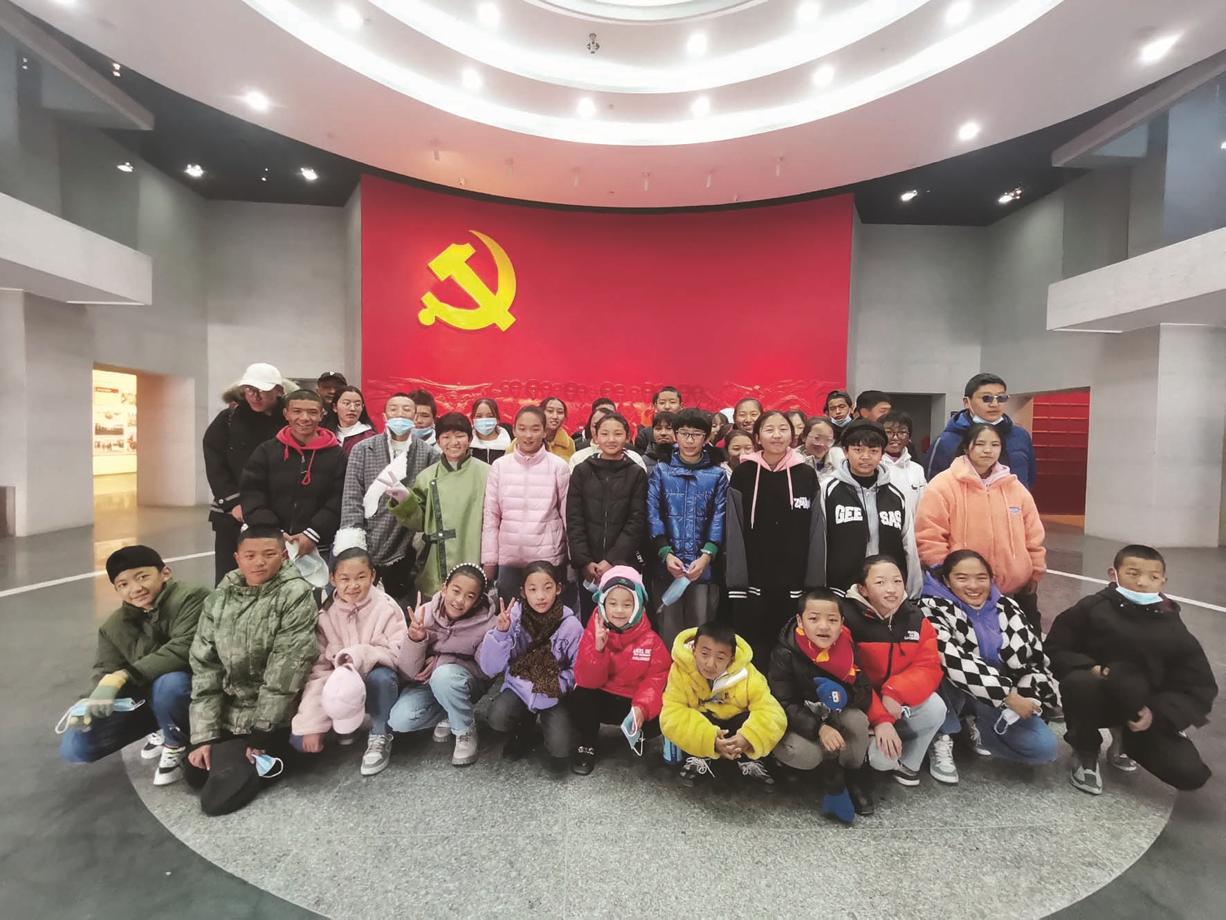 圖為參加西藏2022童心向黨冬令營活動的拉薩SOS兒童村孩子們在西藏軍區(qū)軍史館合影留念。 拉薩融媒記者 楊 璐攝