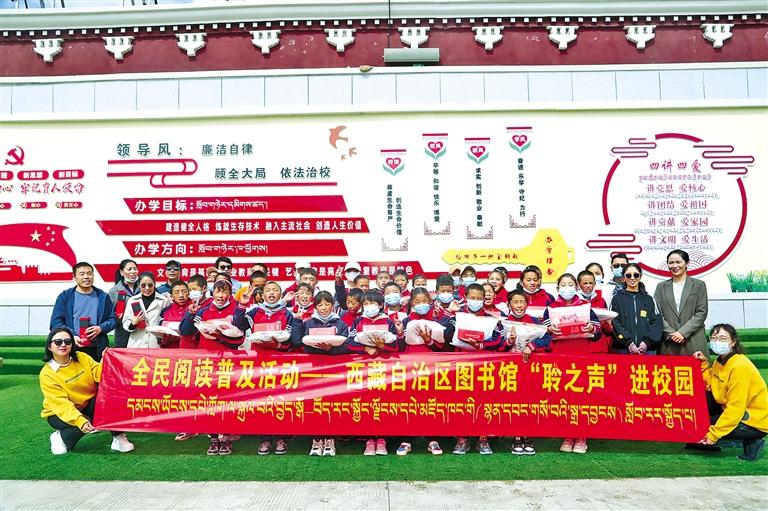 圖為工作人員向在場(chǎng)的學(xué)生發(fā)放了學(xué)習(xí)用品和全民閱讀普及月宣傳品50套。記者 格桑倫珠 攝