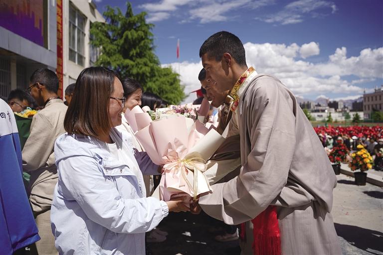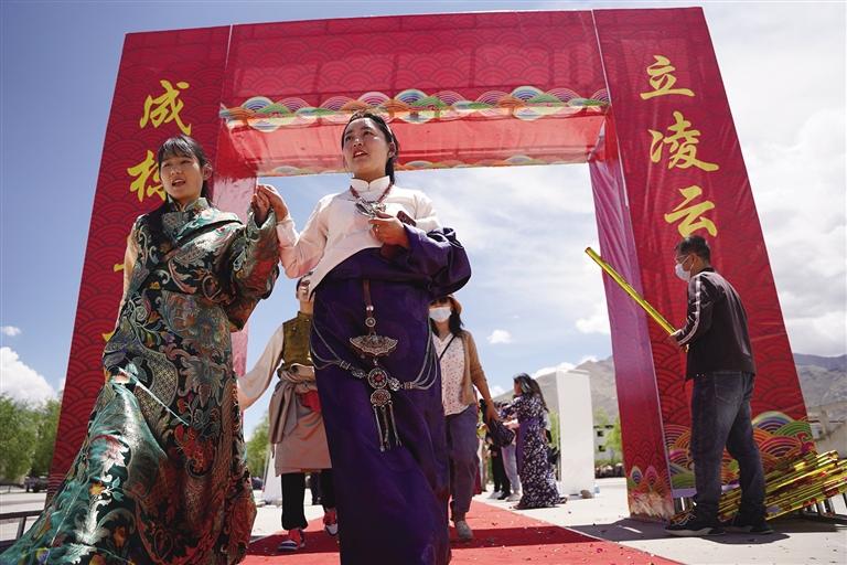 走進拉薩市第四高級中學,校園里每個角落都流露出喜悅與溫馨,同學們身著色彩鮮艷的民族傳統(tǒng)服裝,帶著自信的笑容,在父母與老師的陪伴下,走過“成人門”,踏上“成才路”,通向“成功門”。此時的他們意氣風發(fā),青春的面龐如同朝陽一般閃爍著光芒,滿懷豪情地憧憬精彩的人生。高三學生朗色占堆告訴記者:“今天是特別值得紀念的日子,以后我們都是成年人了,會勇于承擔責任,對自己的行為負責,努力成為一個有知識、知感恩、有責任、有擔當?shù)男聲r代新青年?!?/p>